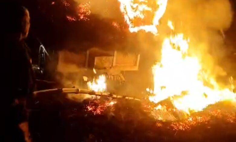 जर्जर बिजली के तार से ट्रैक्टर ट्राली पर लदे बोझा में लगी भीषण आग, किसानों ने जताया विरोध