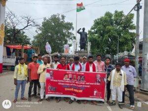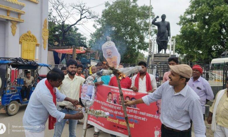 जिसे बर्दाश्त नहीं किया जाएगा. यह मार्च ज्योति चौक पहुंचने के बाद नुक्कड़ सभा में तब्दील हो गई जहां प्रधानमंत्री नरेंद्र मोदी और मुख्यमंत्री नीतीश कुमार का पुतला दहन किया गया.इस मौके पर नगर अध्यक्ष अखिलेश ठाकुर ,अंकित सिद्धार्थ, RYA के दीपू, जितेंद्र जी,विकास ,धनजय, शिवजी, तनू, मोनीब,माले सचिव ओमप्रकाश ,राजाराम ,सोनू,चातरघुम के अलावा अन्य लोग शामिल हुए.