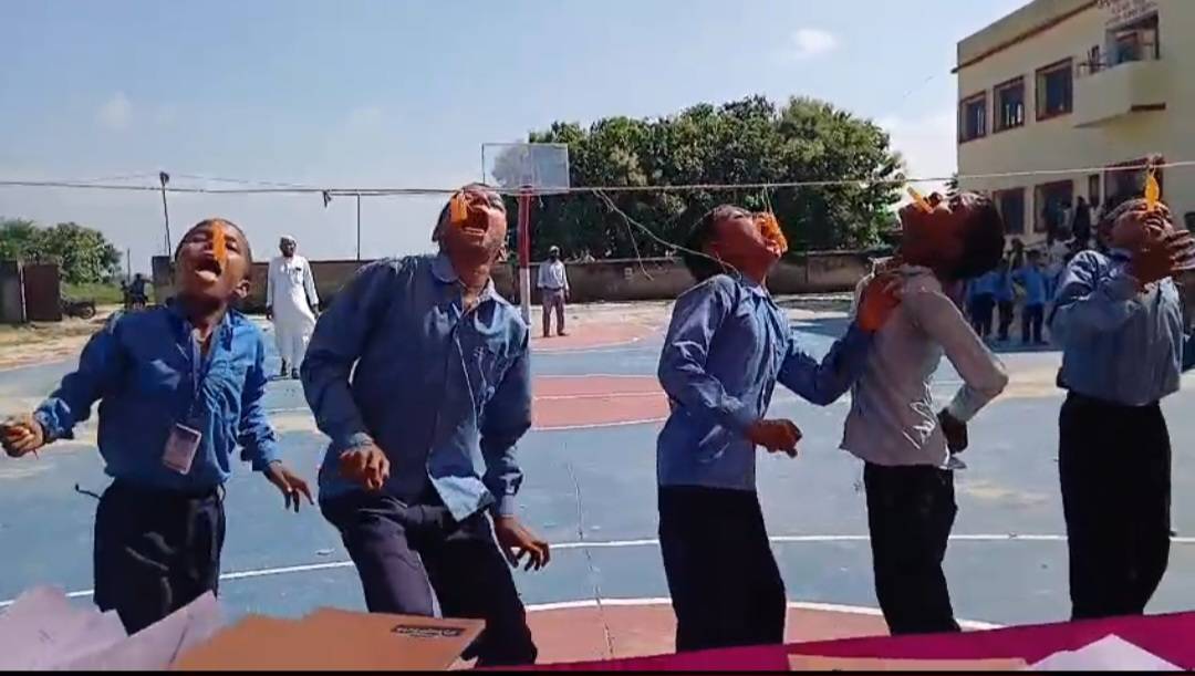 जलेबी दौड़ में प्रतिभा दिखाते छात्र