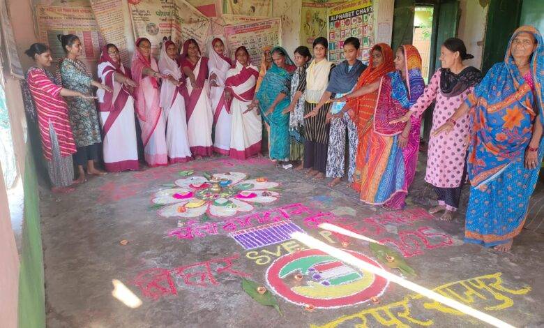 महिलाओं एवं युवतियों ने बढ़-चढ़कर इसमें भाग लिया. रंगों व मेहंदी की कलात्मकता के माध्यम से “शत-प्रतिशत मतदान” का संदेश प्रसारित किया. जनसमूह एवं प्रतिभागियों ने यह संकल्प लिया कि वे स्वयं मतदान करेंगे तथा अपने परिजनों और समाज के अन्य योग्य मतदाताओं को भी मतदान के लिए प्रेरित करेंगे.महिला सशक्तिकरण और सेविकाओं की भूमिका आंगनबाड़ी सेविकाएँ न केवल पोषण और स्वास्थ्य के क्षेत्र में महत्वपूर्ण भूमिका निभाती हैं, बल्कि समाज को जागरूक करने में भी उनकी अग्रणी भागीदारी रहती है.