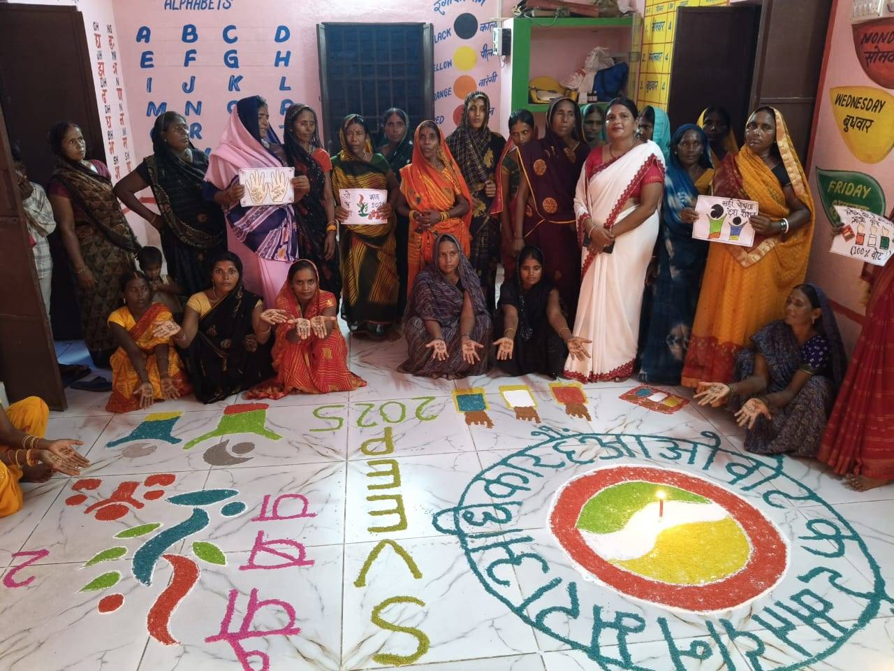 महिलाओं एवं युवतियों ने बढ़-चढ़कर इसमें भाग लिया. रंगों व मेहंदी की कलात्मकता के माध्यम से “शत-प्रतिशत मतदान” का संदेश प्रसारित किया. जनसमूह एवं प्रतिभागियों ने यह संकल्प लिया कि वे स्वयं मतदान करेंगे तथा अपने परिजनों और समाज के अन्य योग्य मतदाताओं को भी मतदान के लिए प्रेरित करेंगे.महिला सशक्तिकरण और सेविकाओं की भूमिका आंगनबाड़ी सेविकाएँ न केवल पोषण और स्वास्थ्य के क्षेत्र में महत्वपूर्ण भूमिका निभाती हैं, बल्कि समाज को जागरूक करने में भी उनकी अग्रणी भागीदारी रहती है.