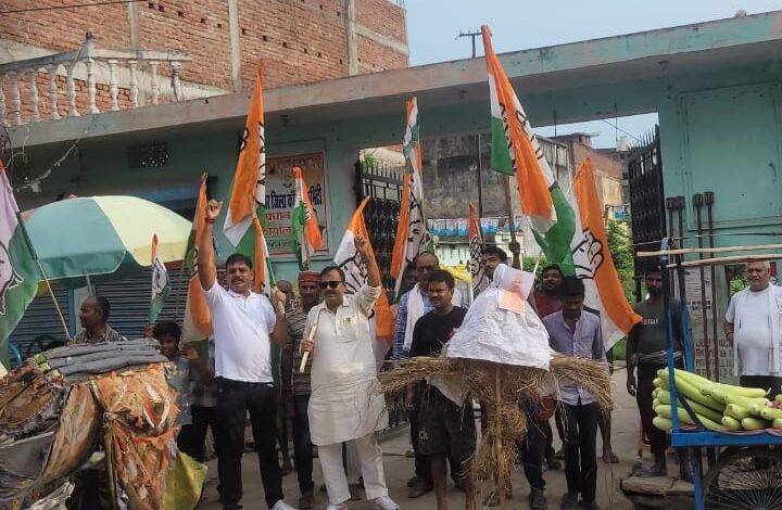 कांग्रेस मुख्यालय पर हुए हमले के विरोध में पीएम एवं सीएम का हुआ पुतला दहन