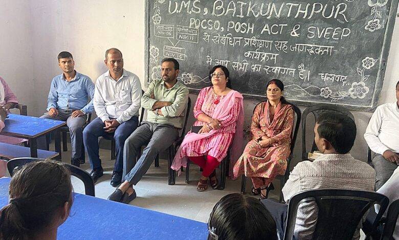 नेशनल आवाज़/बक्सर :- जिले के इटाढ़ी प्रखंड के उत्क्रमित मध्य विद्यालय, बैकुंठपुर में POCSO Act का प्रशिक्षण एवं मतदाता जागरूकता (SVEEP) का आयोजन किया गया.जिसमें बच्चों को सुरक्षा की जानकारी दी गयी. बालक एवं बालिकाओं को उनके कानूनी अधिकारों के बारे में बताया गया जिसमें बच्चों से संबंधित सलाह, बाल विवाह रोकथाम, कानूनी जागरूकता, उच्च शिक्षा, विविध पहलुओं के माध्यम से बच्चों का सशक्तिकरण, महिला सशक्तिकरण, लिंग चयन प्रतिषेध, लैंगिक भेदभाव पर रोक, दहेज़ रोकथाम.