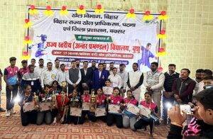 इस खेल को सफल बनाने में आए हुए तकनीकी पदाधिकारी को भी मोमेंटो शाल से सम्मानित किया गया.खेल के अंतिम दिन बालिका वर्ग में 45 किलो भार वर्ग में शिवानी कुमारी पटना प्रमंडल स्वर्ण पदक, मासूम कुमारी सारण प्रमंडल रजत एवं प्रज्ञा परस्त तिरहुत प्रमंडल कांस्य पदक, कोमल कुमारी मुंगेर प्रमंडल कांस्य 2 प्राप्त किया.48 किलो भार वर्ग में लक्ष्मी कुमारी पटना प्रमंडल स्वर्ण पदक, रितु कुमारी सारण प्रमंडल रजत पदक,आदिति कुमारी मुंगेर प्रमंडल कांस्य पदक, नंदनी कुमारी तिरहुत को दिया गया.