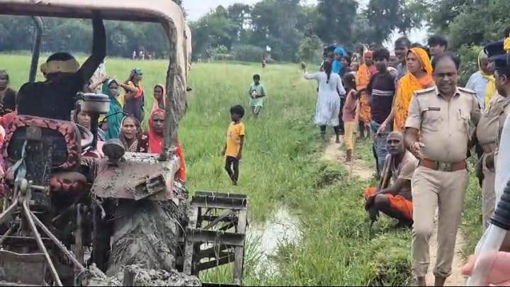 विवादित जमीन पर खेत जुताई के दौरान पुलिस पर ग्रामीणों ने किया पथराव, आधा दर्जन पुलिस कर्मी घायल