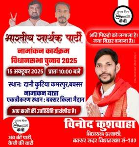 विनोद कुशवाहा भारतीय सार्थक पार्टी के प्रत्याशी घोषित, 15 को करेंगे नामांकन
