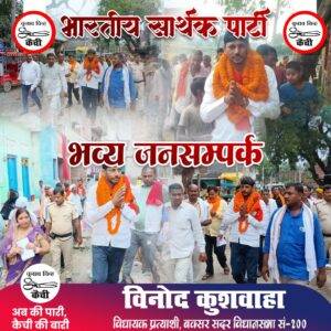 नेशनल आवाज़/बक्सर :- बिहार विधानसभा चुनाव 2025 के अंतिम चरण के प्रचार के बीच प्रत्याशियों ने जनसंपर्क अभियान को तेज कर दिया है. इसी क्रम में बक्सर विधानसभा क्षेत्र (संख्या 200) से भारतीय सार्थक पार्टी के उम्मीदवार विनोद कुशवाहा ने क्षेत्र के बुढाडीह, पीठारी, सरेंजा और पलिया गांवों में व्यापक जनसंपर्क अभियान चलाया.